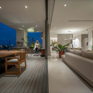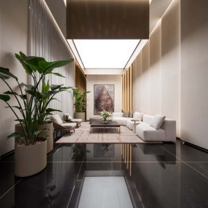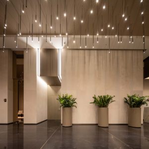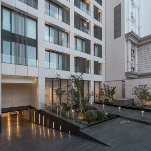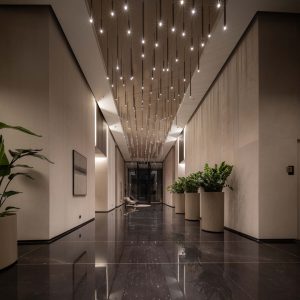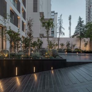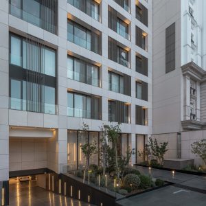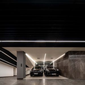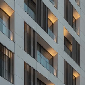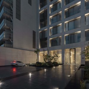 Special attention has been given to architectural lighting, which enhances the structure after sunset and adds depth, balance, and character to the façade throughout different times of day.