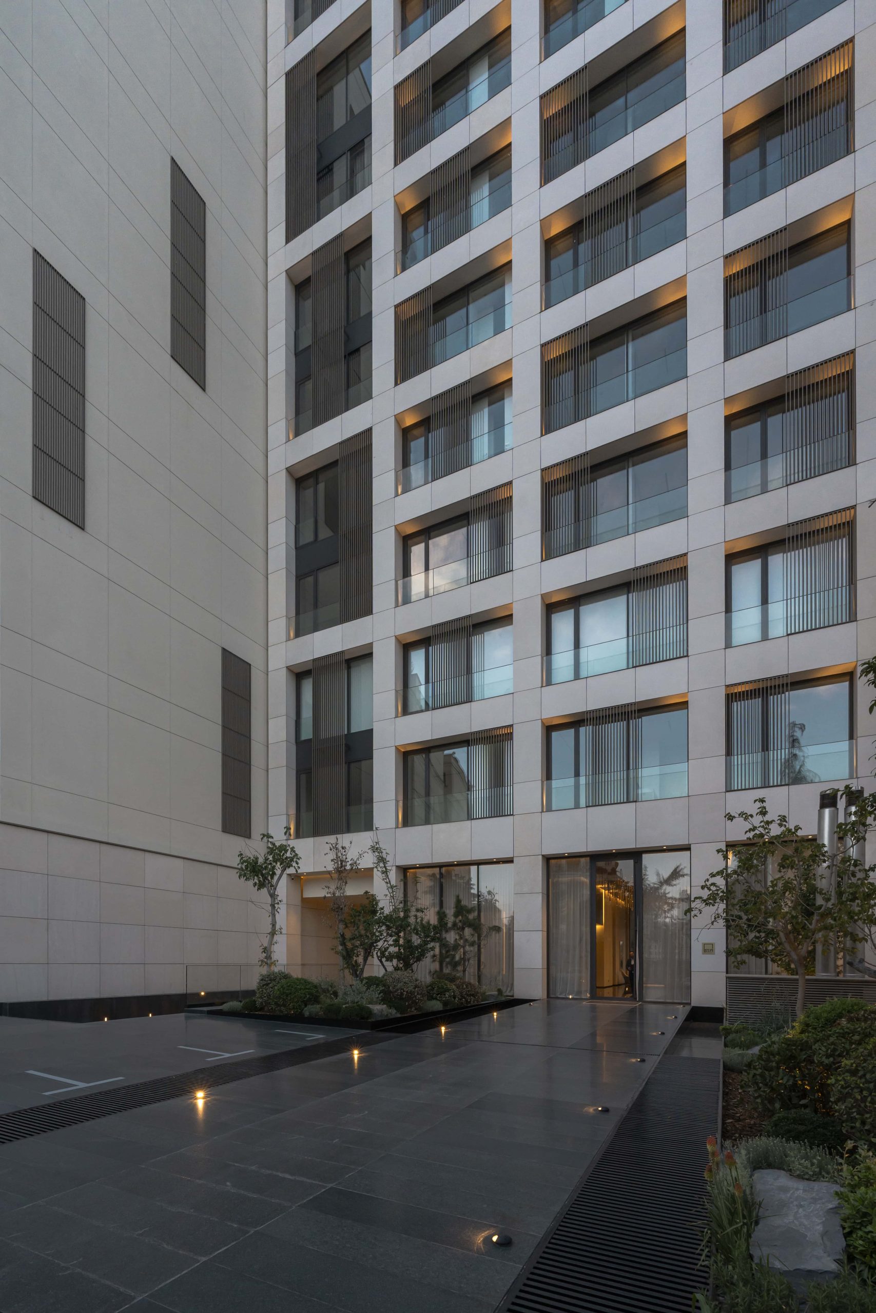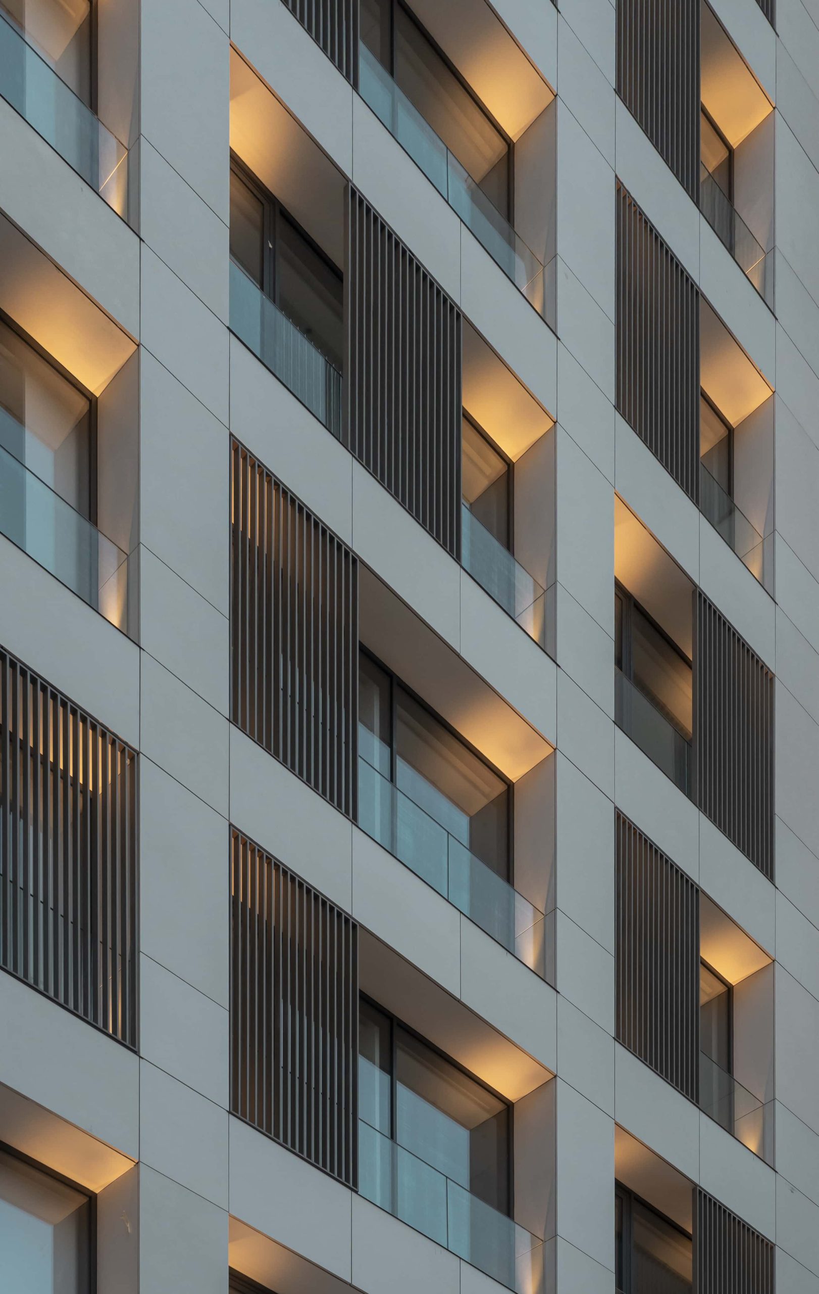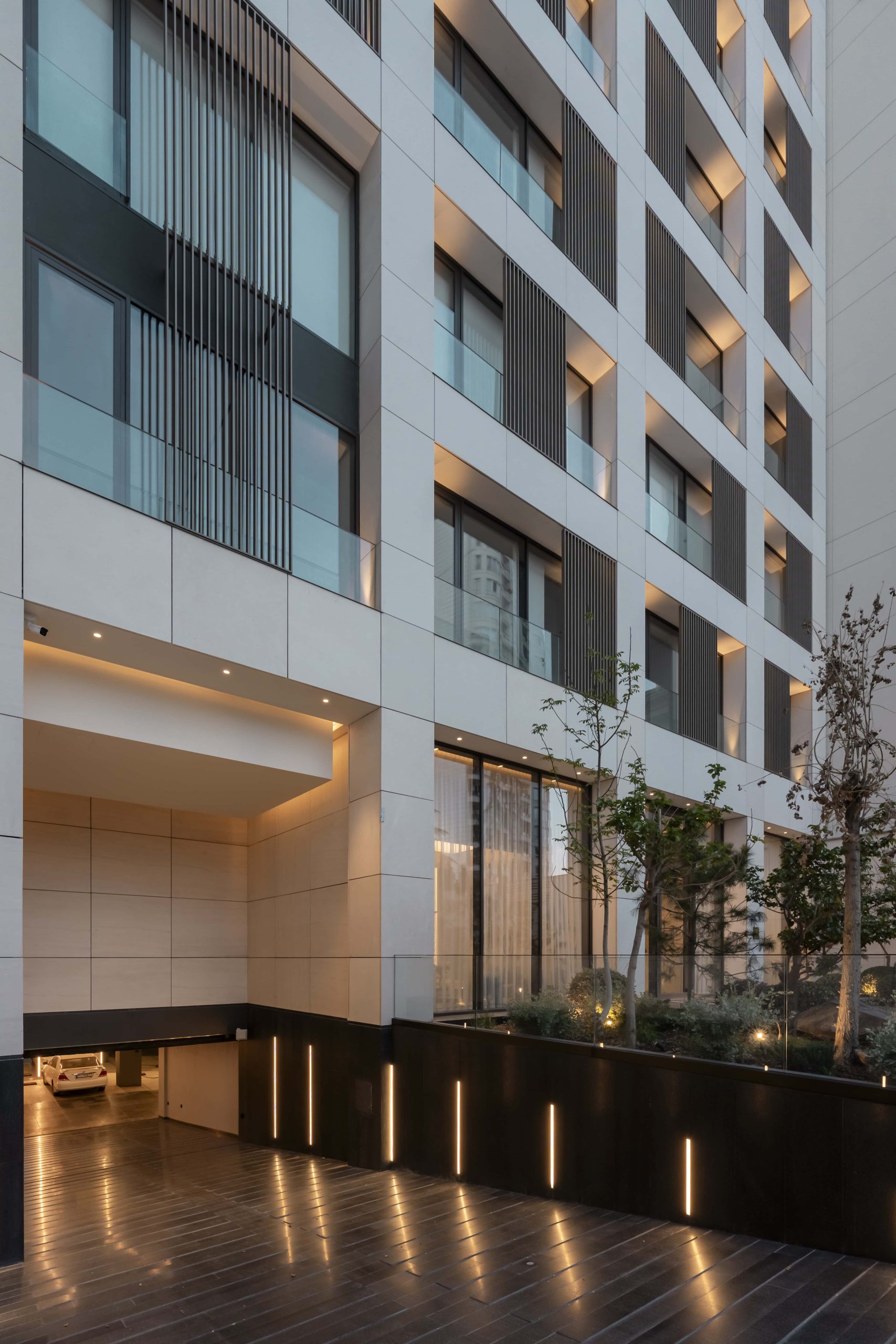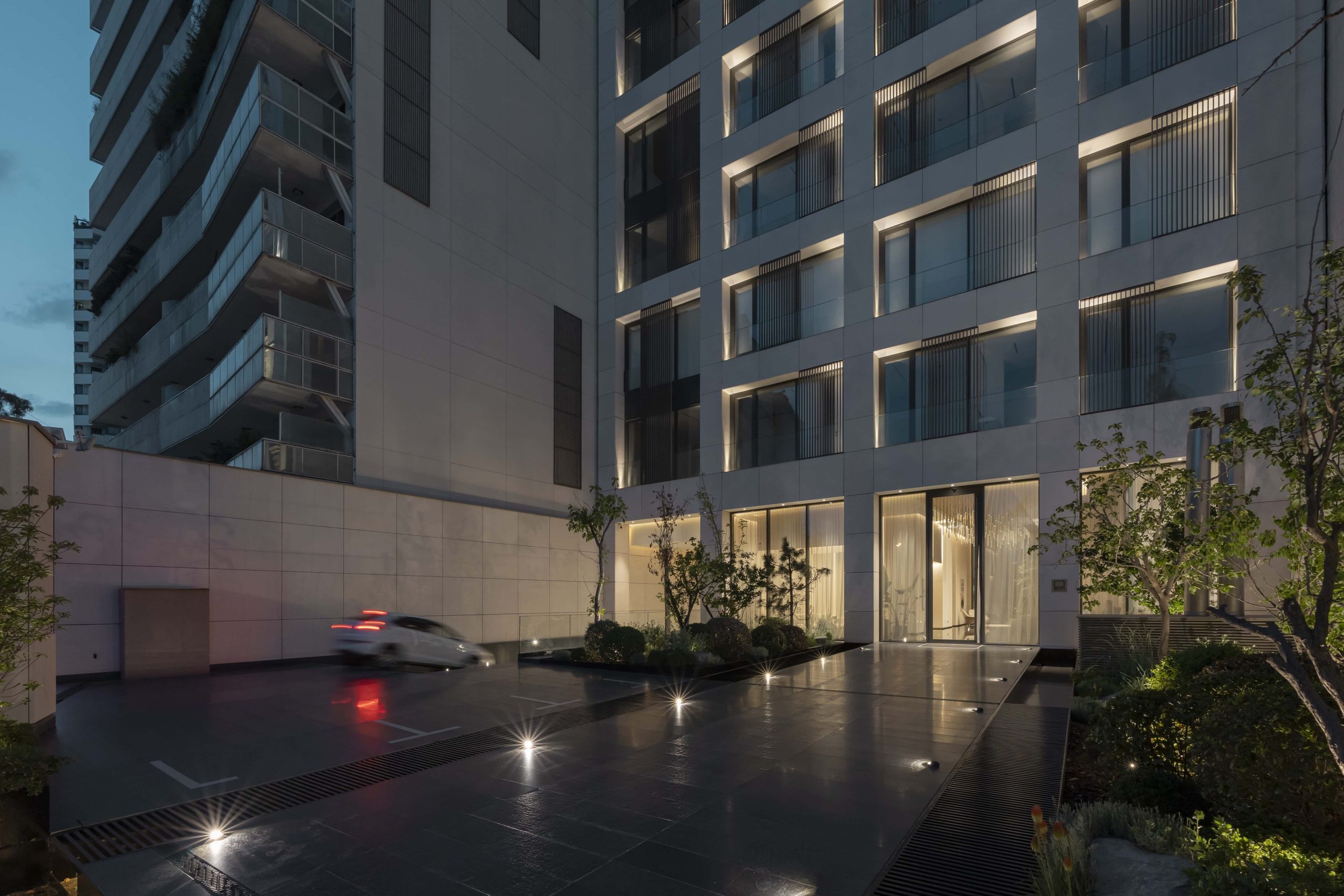 Special attention has been given to architectural lighting, which enhances the structure after sunset and adds depth, balance, and character to the façade throughout different times of day.
