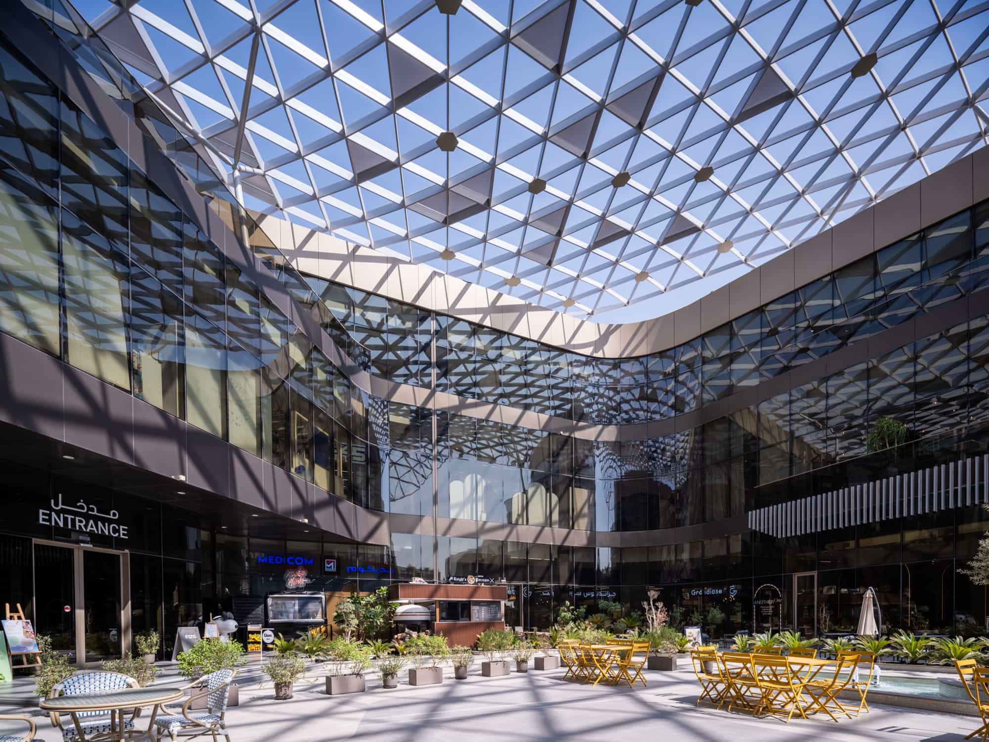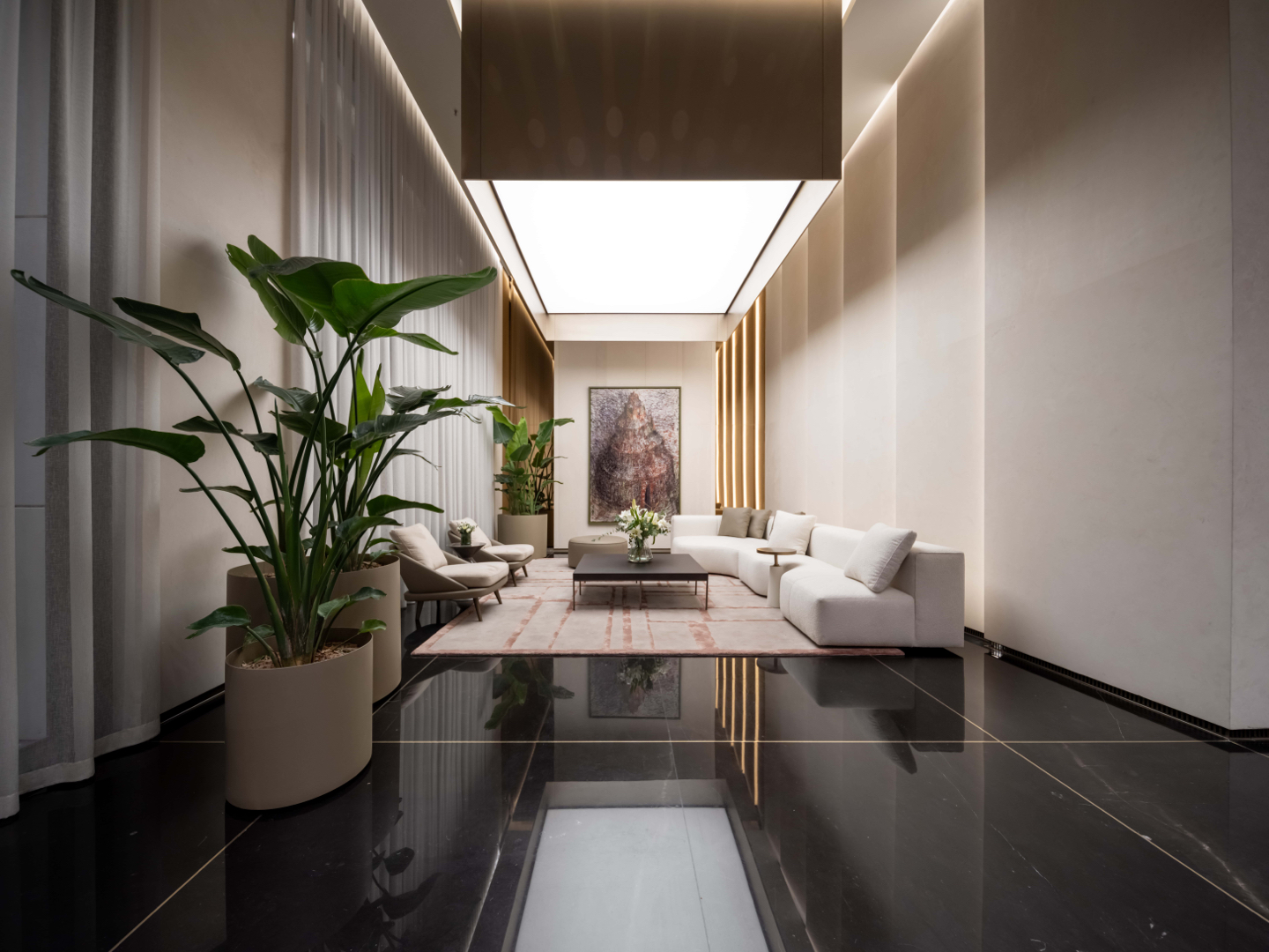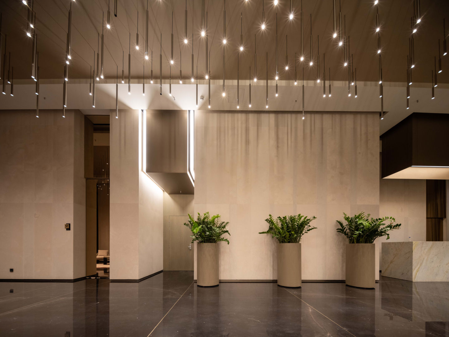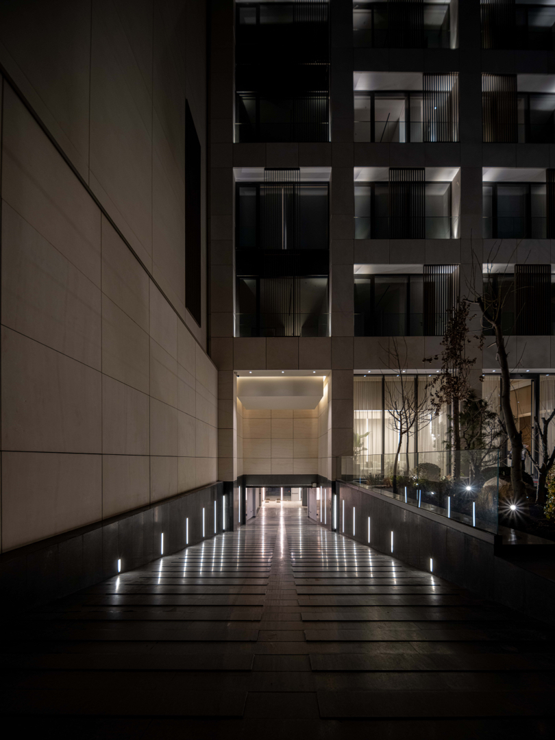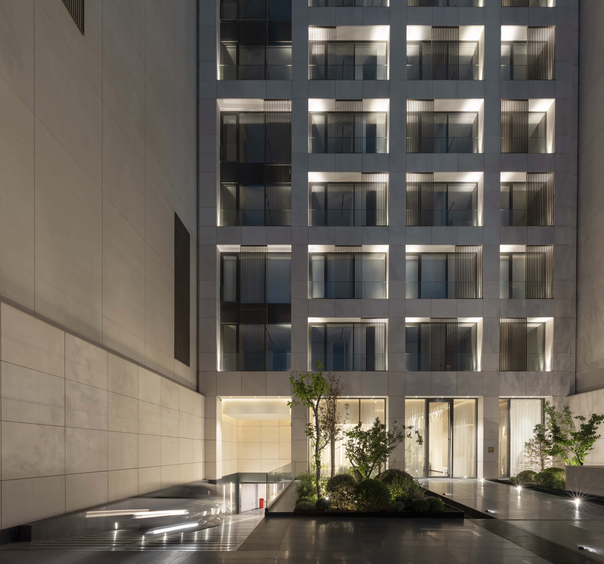 Special attention has been given to architectural lighting, which enhances the structure after sunset and adds depth, balance, and character to the façade throughout different times of day.