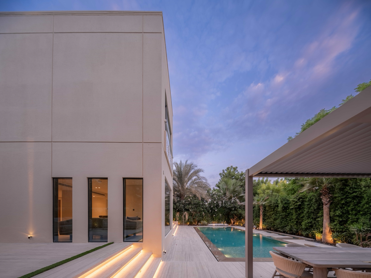 The villa is developed and constructed by Luxe Race, a company recognized for its high-end execution standards and meticulous attention to detail. Through this project, the focus was not only on capturing architectural form, but also on conveying a sense of lifestyle, exclusivity, and the calm sophistication that defines Emirates Hills.
